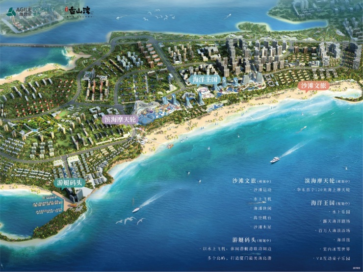 未来香山湾还将打造成为万亩滨海度假湾区,500亿投资规划打造海洋王国、水上乐园、五星级酒店群、滨海摩天轮、滨海奥特莱斯等丰盛的海居度假配套,实现更舒服的滨海度假生活。