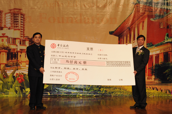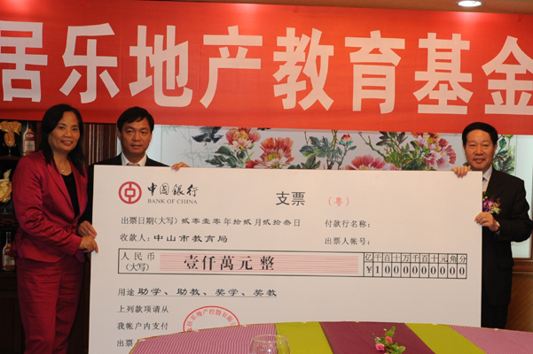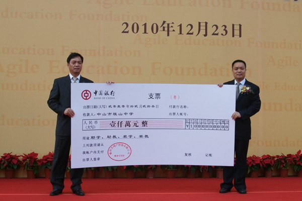 2010年,开云棋牌注册就送 向中山市3所中学及中山市教育局捐款6000万