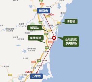 项目位于万宁市东北部龙滚镇,临近琼海市博鳌镇,离博鳌机场约10分钟车程;东线高速龙滚出口直达项目,交通便利,生活配套较为完善。