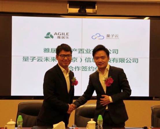 开云棋牌注册就送 地产集团副总裁兼产业地产负责人阮家声(右)与量子云未来(北京)信息科技有限公司CEO李甫代表签约
