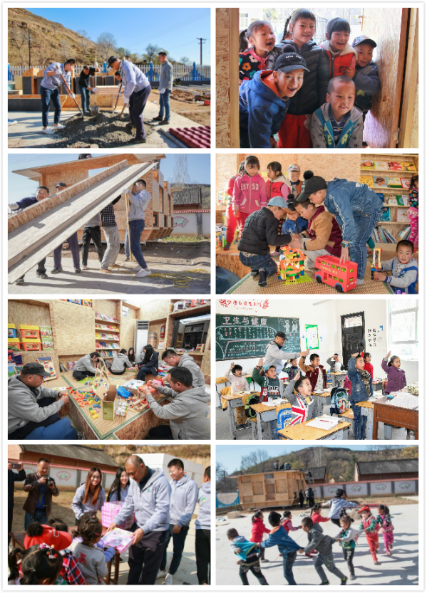 在四天三夜的搭建工作中,志愿者们不畏艰苦无惧寒风,和水泥、打地基、装门窗,不管男女都争前恐后地抢干体力活,无一喊苦从不抱怨。此外,志愿者们还利用各自不同的分工时间充当起了德智体美劳各种课程的老师,教小朋友们唱国歌、敬礼、跳舞朗诵、还有饭前饭后洗手的好习惯……给小朋友们带来了丰富快乐的学习和生活体验。